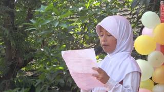 Penyampaian kata-kata perpisahan dari siswa yang Ditinggal, pada acara perpisahan siswa kelas 6 dengan keluarga besar SDN 146 Pekanbaru TP.